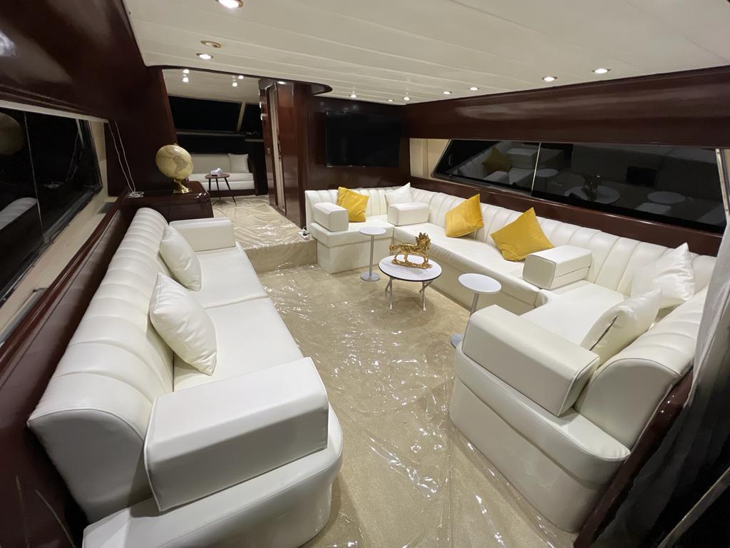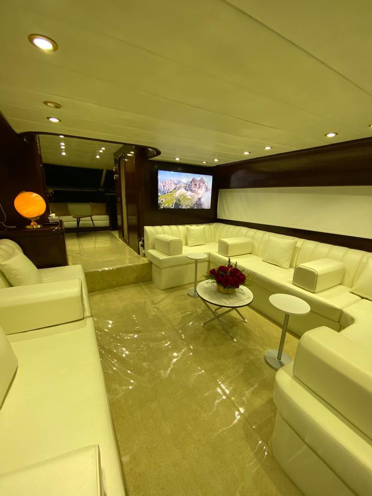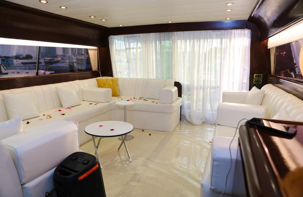 Для торжеств и мероприятий высокого уровня можно арендовать яхту премиум-класса вместимостью до 50–65 человек. Здесь есть всё: бассейн, солярий, площадка для танцев, просторный салон, профессиональная кухня и отдельные VIP-зоны. Такие яхты чаще всего используются для свадеб, юбилеев, бизнес-событий или гламурных вечеринок на фоне заката и сверкающих огней ночного Абу-Даби.